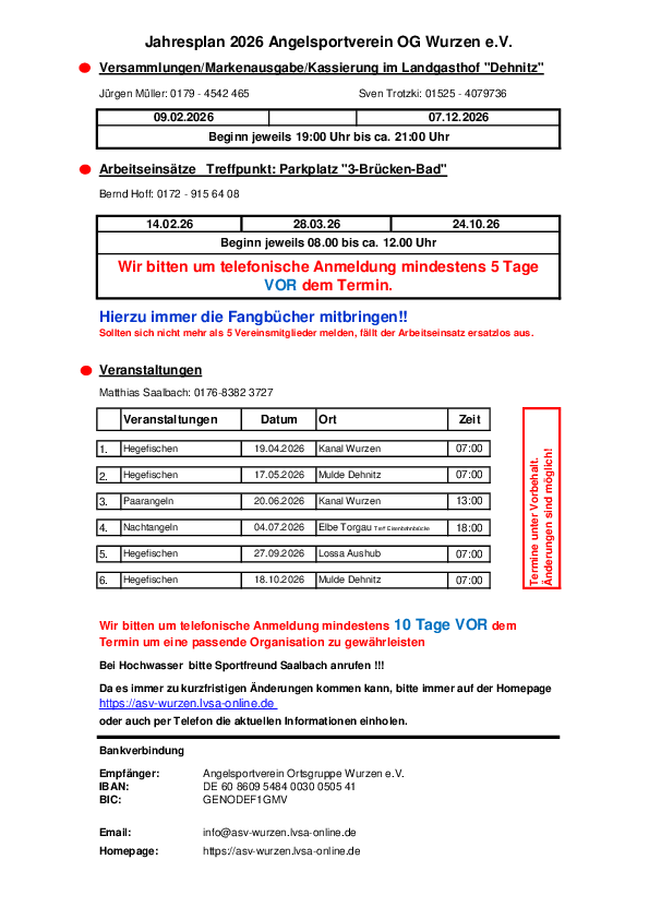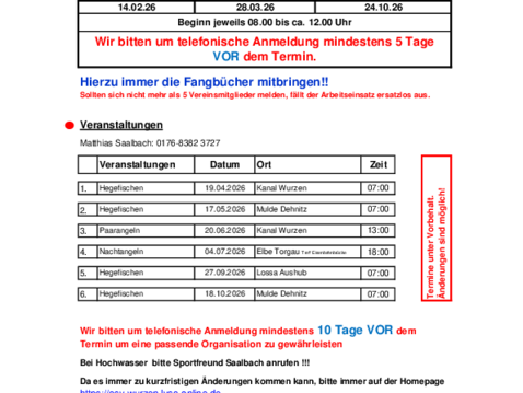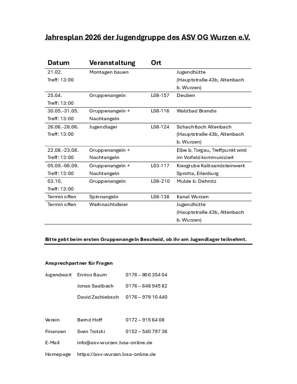 Veranstaltungspläne des ASV OG Wurzen